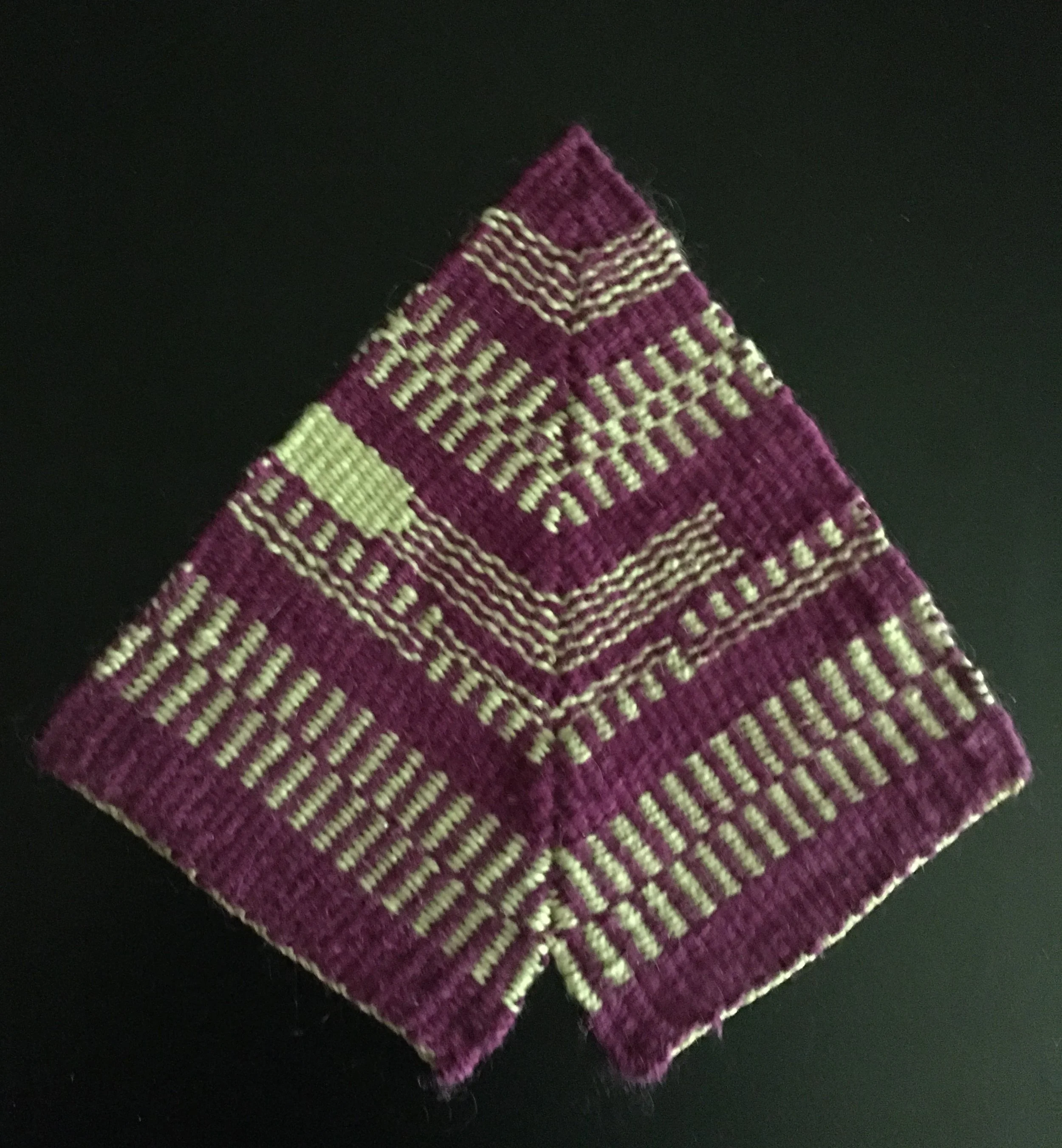 Angled double-weave sampler; various weft sequences